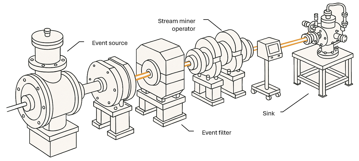 The term Beamline is borrowed from high energy physics, where it indicates the physical structure used to define experiments, i.e., where the accelerated particles travel. In the streaming process mining case, Beamline is used to set up experiments where process mining events are processed and consumed.